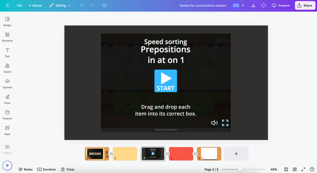 In my opinion being organized is half of the battle in my online teaching endeavors. Combining Canva and Wordwall is one of the ways I achieve that goal.